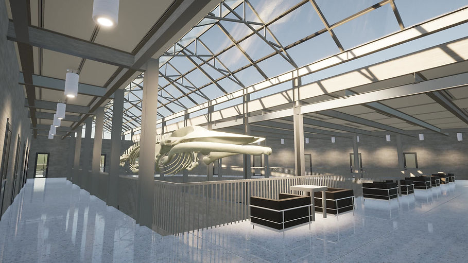 The Marine Innovation Center is located in Newport, Oregon. The project seeks to connect the waterfront fishing district to the oceanic research being conducted by Oregon State University. The goal of the space is to create a sense a wonderment between the public discovery center and the second floor lab spaces to increase interest in the preservation and research of our local wildlife. Above the atrium space hangs a Grey whale skeleton, to spark interest and create a beacon to tourists and locals alike. One of the major design choices I made for the project is the hanging whale skeleton with it's circulation for the staff and researchers around it. Because the site is in Newport, Oregon, the weather conditions permit for more overcast skies, so I opted for more glazing for increased daylighting opportunities and for more views to the waterfront.